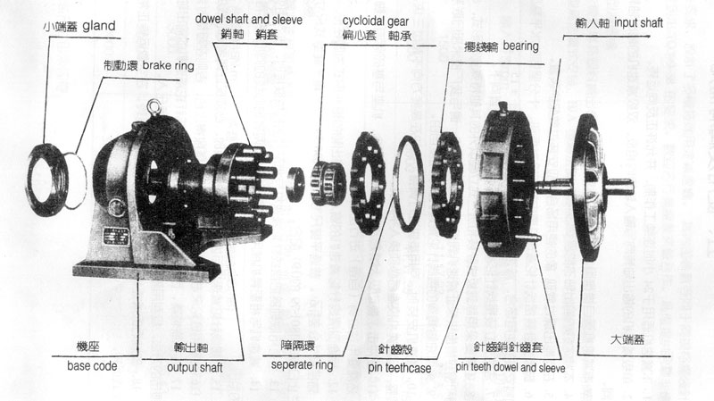 一級XWD臥式擺線針輪減速機全部傳動裝置結構可分為三部分:輸入部分、減速部分、輸出部分,其輸入結構是高速部分,連接輸入電動機(馬達);其輸出部分是減速機的低速部分,其輸出軸通過鏈輪或者聯軸器、連接盤等接入用戶需要帶動的設備。